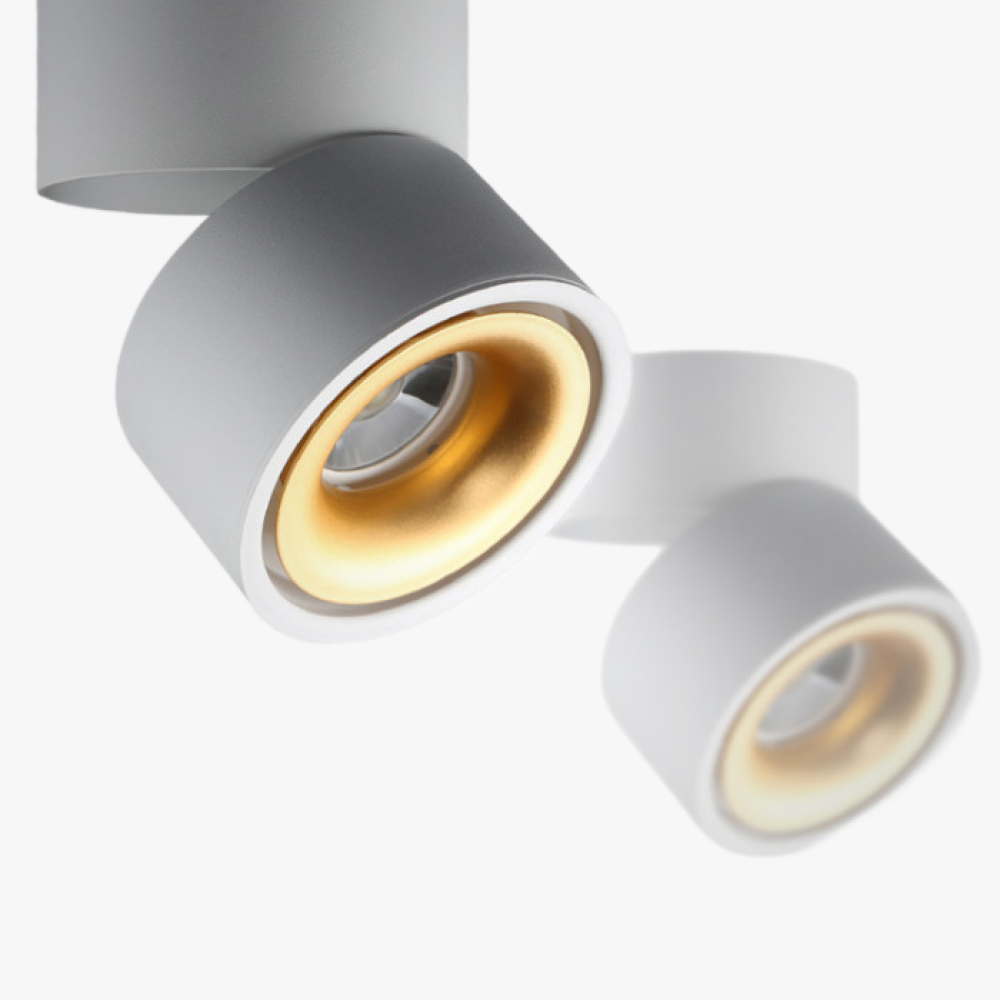 Потолочный спот имеет две опции установки: с креплением для трековых систем или встроенным в потолок. По умолчанию, он поставляется с накладным типом крепления. Выбор мощности светодиода варьируется от 3 до 10W и доступны два цвета свечения: желтый и белый. Дополнительно, можно установить диммируемые лампы для регулировки яркости.