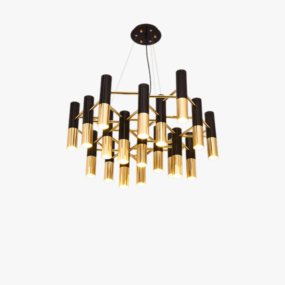 | Форма плафонаЦилиндр | Цвет арматурыЧерный, Золото | Цвет плафонов и подвесокЗолото |