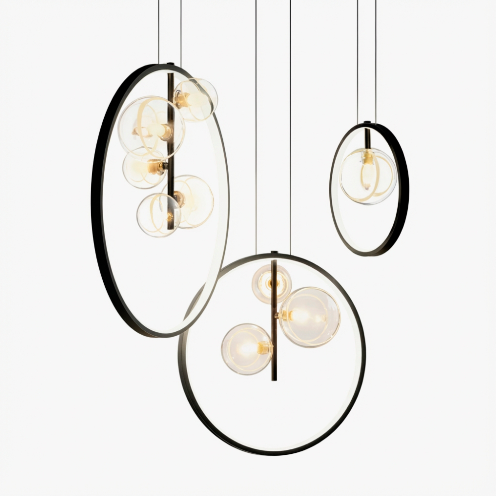 | Форма плафонаСфера, Круг | Цвет арматурыЧерный | Цвет плафонов и подвесокПрозрачный |