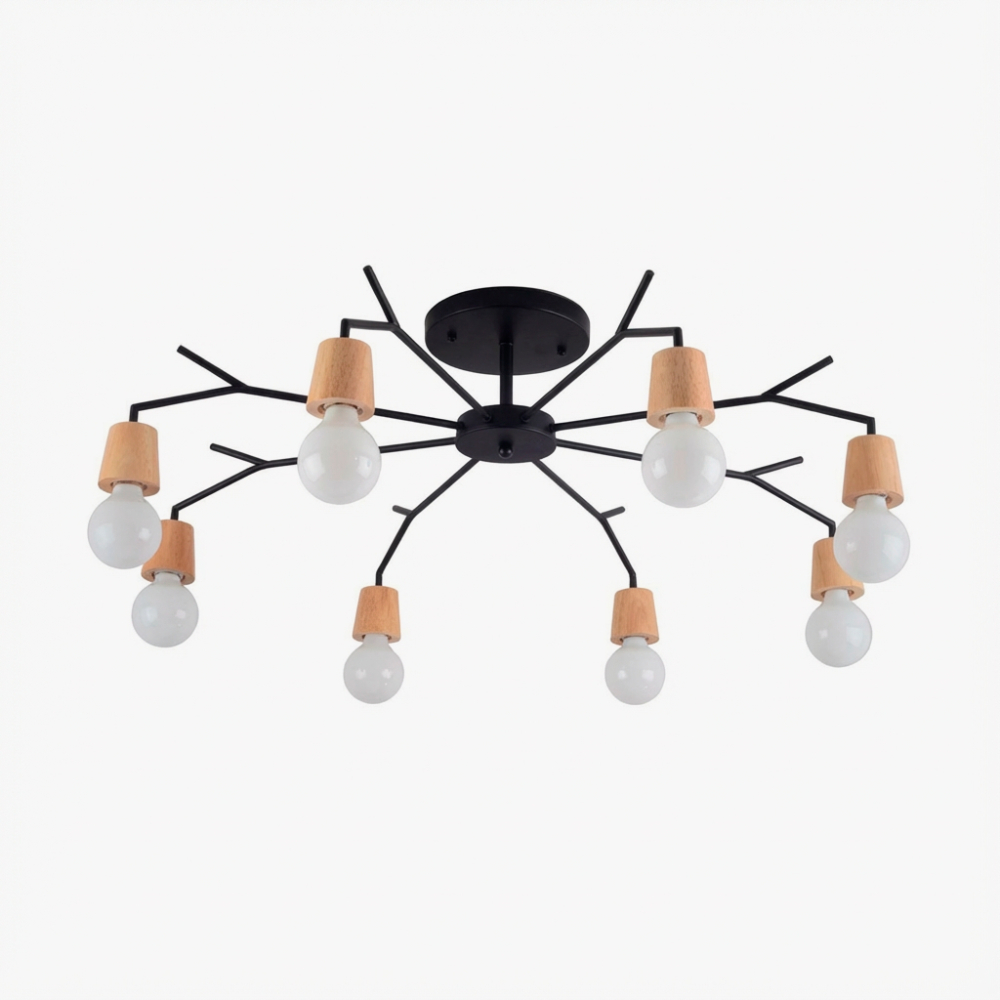 Дизайнерская люстра LES в скандинавском минималистичном стиле станет ярким акцентом в интерьере. Каркас, имитирующий ветви дерева, выполнен из прочного металла, а плафоны изготовлены из натурального дерева. Цвет арматуры – черный, что придает изделию элегантность и изысканность.