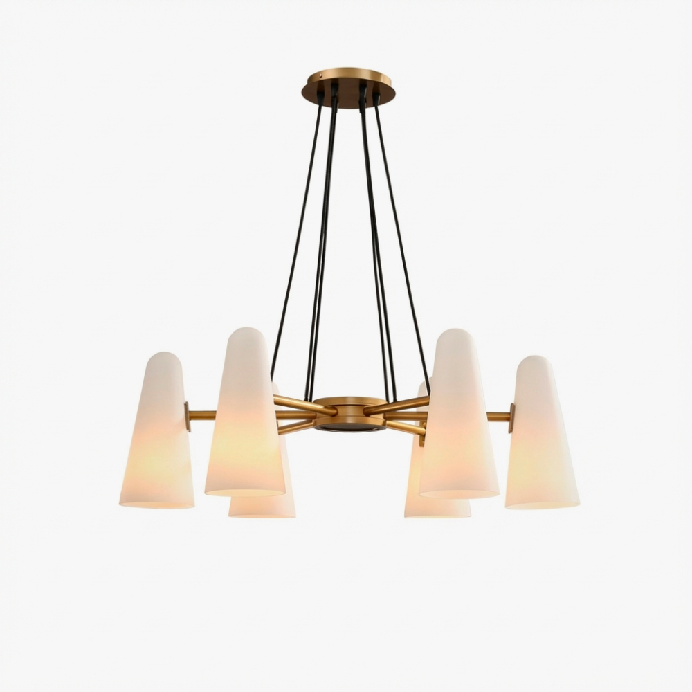 | Форма плафонаКонус | Цвет арматурыЛатунь | Цвет плафонов и подвесокБелый |