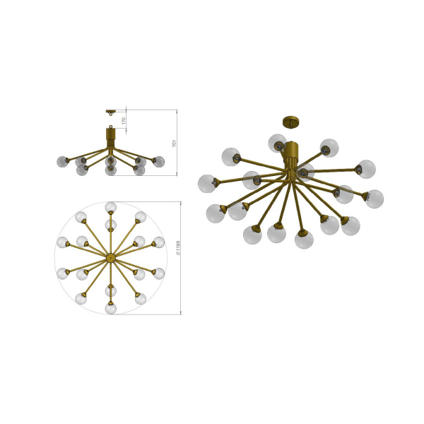 | Діаметр120 см | Діаметр Плафону13 см | Кількість ламп16+ |