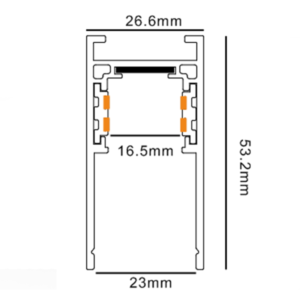 Магнітний шинопровід, накладний арт. 32874 Прямокутний переріз шинопроводу, збільшена товщина стінок та додаткове ребро жорсткості, збільшили міцність всієї конструкції та ії надійність при монтажі і експлуатації. Конструкція має канал для зручного монтажу кабелю в самому шинопроводі. Технічні характеристики можуть змінюватися в залежності від партії.