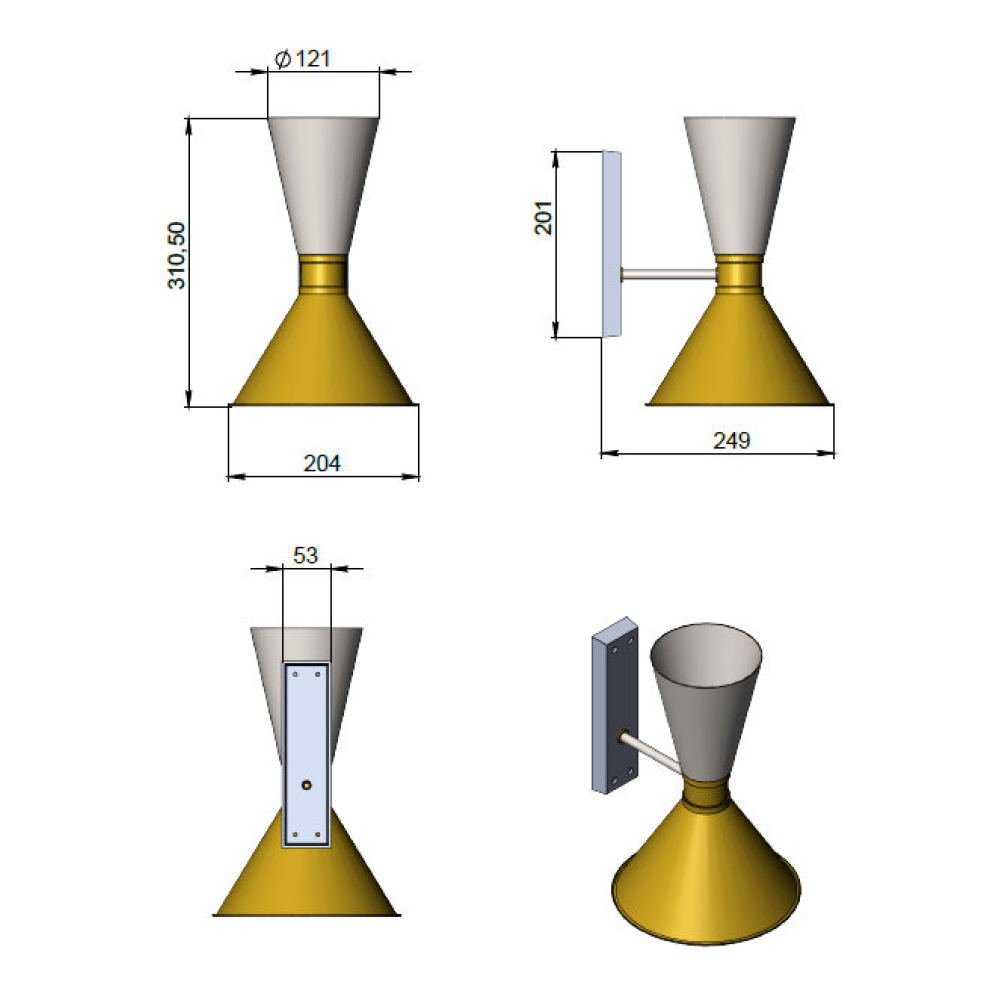 Настенный бра Dualight, арт. 11895 Универсальный дизайн настенного светильника Dualights удачно подсветит ваше пространство. Дизайнерская форма плафонов в форме песочных часов с благородной латунью – непринужденный и столь нужный источник света. Четкий силуэт формирует потоки света вверх и вниз и продолжает линию изделия на стене, что придает особые эстетические качества, а латунный пояс уместно дополняет дизайн. В серии Dualight все плафоны содержат два спота света, направленных вверх и вниз. Бра также имеет 2 спота света, что позволяет удачно применять его для освещения помещений, которым не хватает естественного освещения. Особенно часто бра используют в ванной комнате, чтобы подсветить зону зеркала, а еще – по бокам кровати в спальной комнате. Для изделия использовали высококачественные алюминий и латунь, чтобы свет служил вам надежно и долго, даря тепло в каждом пространстве. Люстра украинского производства создана в мастерской Pikart, где заботятся о каждой детали изделия с уважением к вам. Будет отличным выбором для классического интерьера спальни, ванной комнаты или коридора. Особенно удачно смотрятся несколько бра, расположенных вдоль коридора отеля или ресторанов. Можно выбрать как классические варианты дизайна в белом или черном матовом покрытии, так и комбинированное сочетанием цветов. Благородное тепло латуни подчеркнет любые цвета. В целом серия Dualight содержит немало разных моделей света, в том числе 3 модели больших люстр разной геометрии. Для больших помещений мы рекомендуем использовать большую версию круглую люстру Dualight или самую большую версию – люстру Dualight OV с 16 спотами света. Дополнить интерьер можно лаконичным подвесом. Для вашего удобства мы создали 3D модели каждого изделия, чтобы вы смогли подобрать лучшее освещение. Скачать 3D модель настенного бра арт.11895 Вы можете заказать светильник настенный онлайн с доставкой Новой Почтой по всей Украине. Или же выбрать лучшее освещение для пространства, посетив наш шоурум светильников во Львове, где мы подберем лучшее освещение с мыслью о вас и вашем интерьере. Просмотрите, как стильно смотрится бра в белом матовом цвете над лаконичным столиком. Скачать 3D модель настенного бра арт.11895