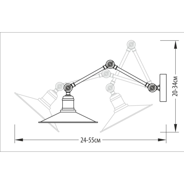 Технические характеристики Бра настенное в спальню и ванную латунное 3-х поворотное, арт. 3298 никель / черный Pikart в стиле лофт