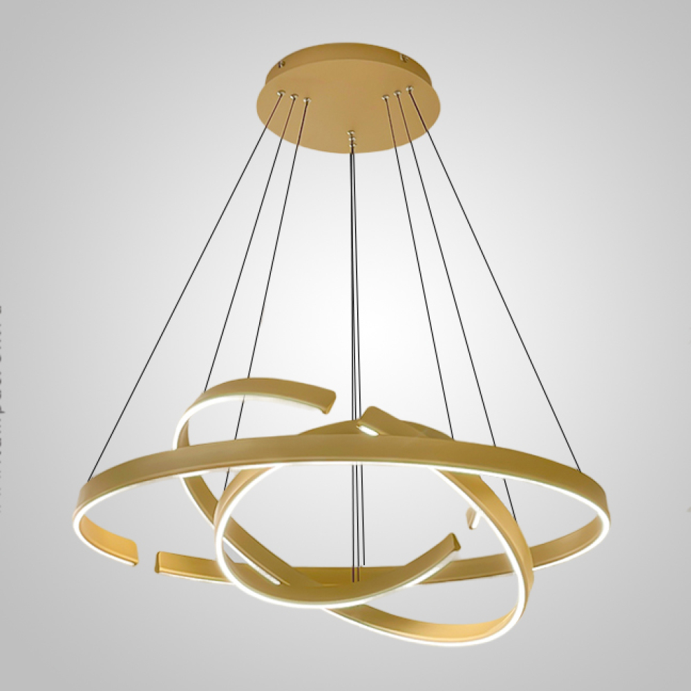 Серия светодиодных люстр в виде комбинации разомкнутых колец разного диаметра на струнном подвесе VEIKKO D65+45+85 Brass