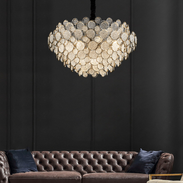 Люстра оснащена 15-ю лампами, подходящими для использования типов LED и накаливания с цоколем E14. Лампы же в комплект не входят, но имеется возможность использования диммирования, если установить лампочки с данной функцией.