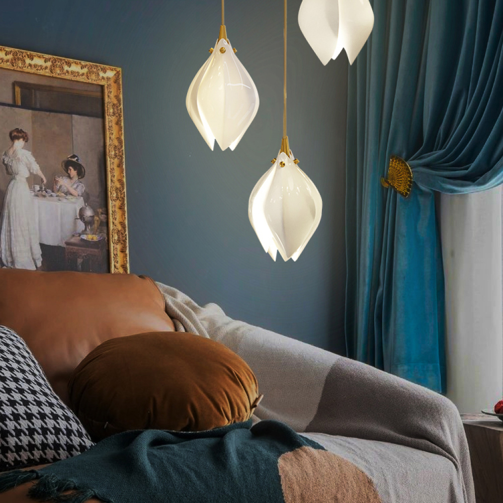 Готовая комбинация подвесных светильников с каплевидными плафонами из нефритового фарфора в форме белых бутонов LEA MORE D80