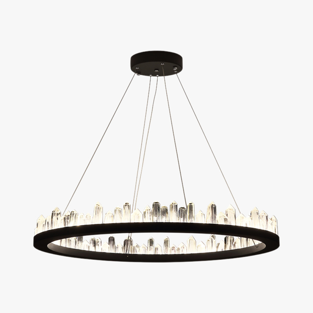 QUARTZ Дизайнерская люстра изготовлена из металла и стекла. Её размеры доступны в трех вариантах: S - 40 см, M - 60 см, L - 80 см и XL - 100 см. Люстра представлена в двух классических цветах: черном и прозрачном.