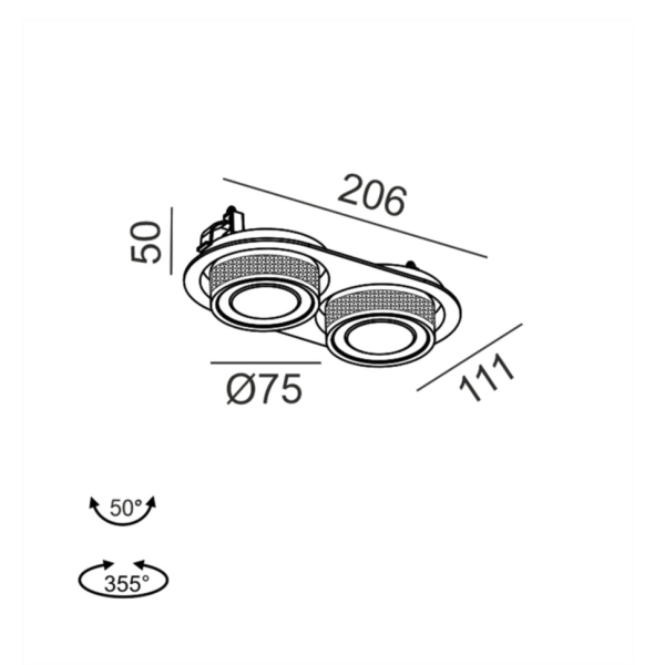 Технические характеристики SOL IN MINI X2, L206mm, W111mm, H50mm, LED 2x7W, 4000K, чёрный/coffee (01.7522.14.940.BK/CFG)