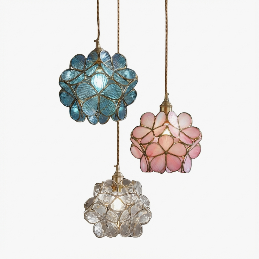 | Форма плафонаЛепестки, Абстрактная | Цвет арматурыЛатунь | Цвет плафонов и подвесокПрозрачный, Голубой, Розовый |