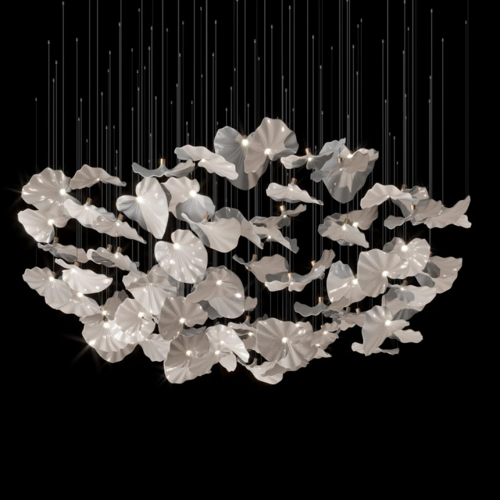 Размеры подвесного элемента колеблются от 250 до 300 мм, что позволяет установить его в различных помещениях, включая холлы и лобби. Эта световая композиция идеально подходит как для гостиниц и офисных зданий, так и для частных домов, придавая интерьеру утонченность и уют.