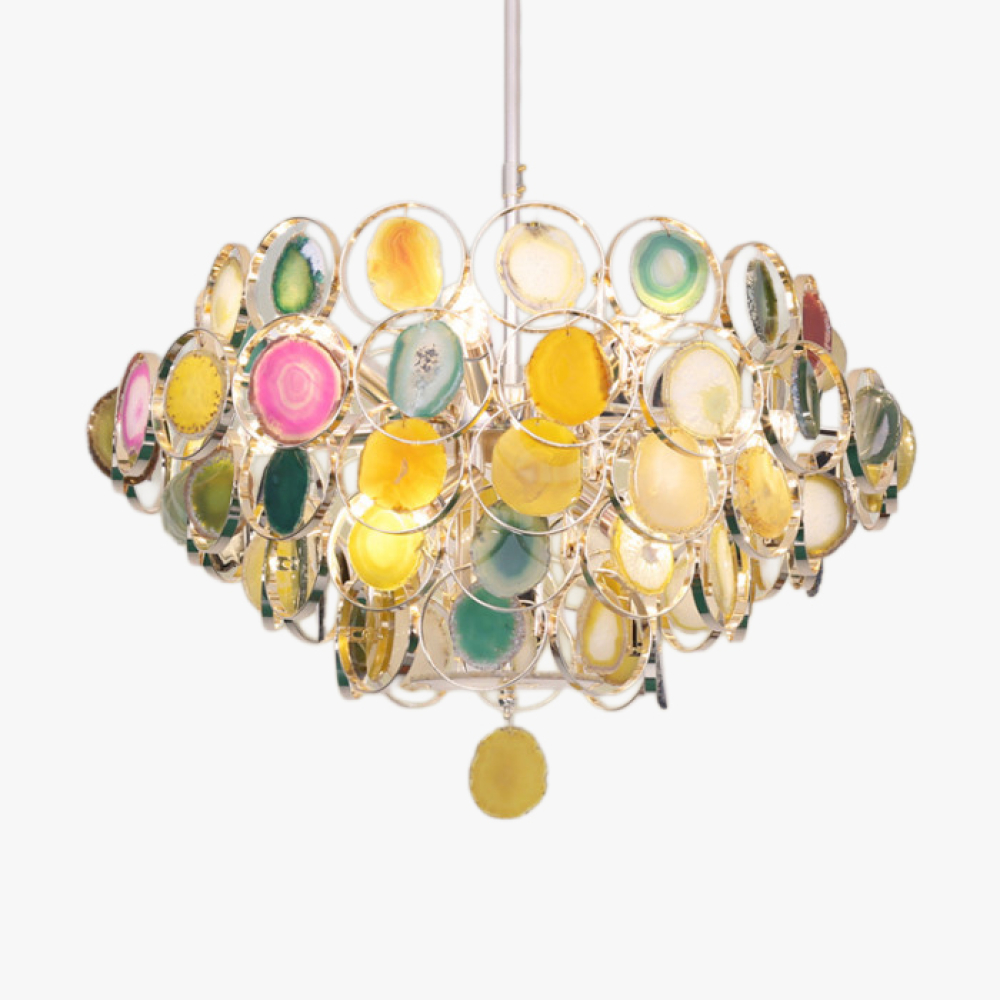 AGATE 1 - дизайнерська люстра, створена з міцного металу та натурального каменю - агата. Кожний плафон виготовлений з відпилення агата і є унікальним твором мистецтва. Ця люстра стане чудовим прикрасою вашого інтер'єру, надасть йому індивідуальності та підкреслить вашу особистість.