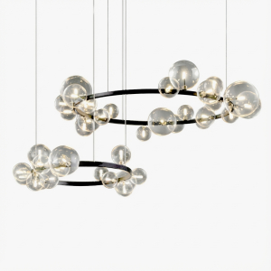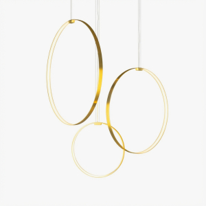 Ви можете купити кільцеву люстру Anzazo у різних варіантах: від одиночних тонких кілець до багатокільцевих композицій. Моделі доступні в чорному, білому, золотому та комбінованих відтінках. Світильники підходять для зали, кухні, спальні, кабінету, зони ресепшн .