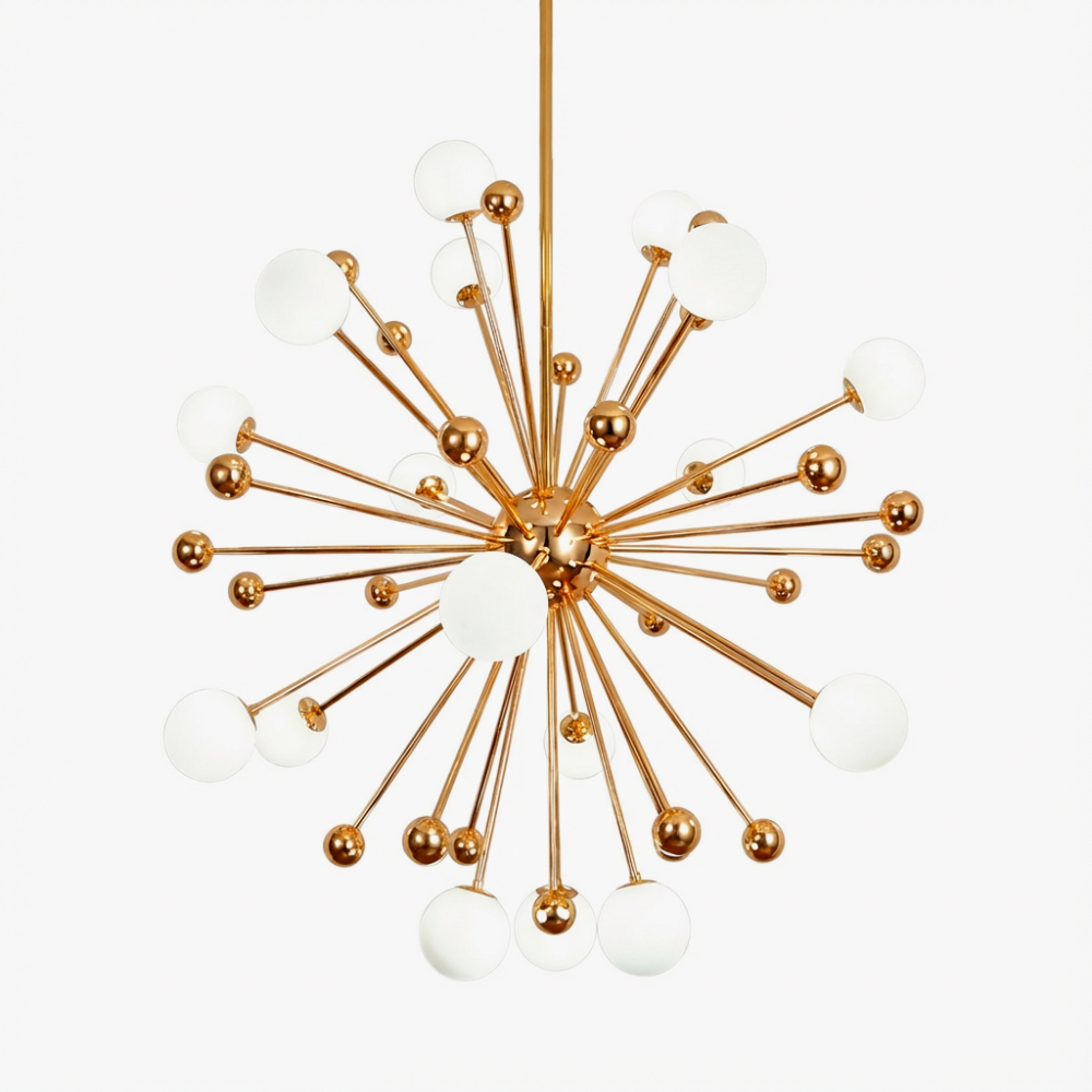 Особливістю цієї люстри є наявність променевого каркасу і кулястого центру, які символізують початок зародження всесвіту. Вона стане справжнім прикрасою вашого інтер'єру і приверне захоплені погляди гостей.