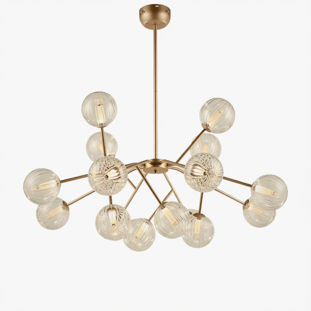 EMBOS A Дизайнерська люстра є висококласною люстрою з оригінальними кулястими плафонами на променевій рамі з латуні. Виготовлена з металу та скла. Люстра має стильний і сучасний дизайн, який чудово впишеться в сучасні інтер'єри.