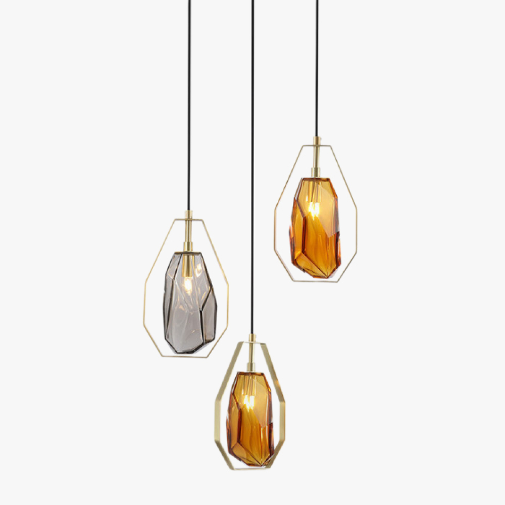 Підвісний світильник GEM є чудовим прикладом дизайнерського освітлення від компанії Anzazo. Виготовлений з металу і скла, цей світильник має металеву арматуру у золотому кольорі, що надає йому сучасний і вишуканий вигляд.