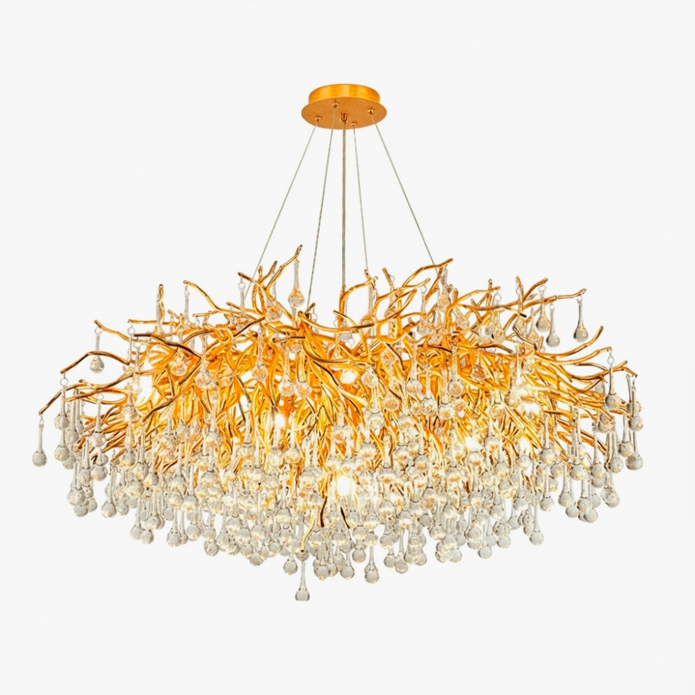 GOLDEN CRYSTAL - ідеальний вибір для тих, хто цінує естетику, якість і розкіш. Не пропустіть можливість придбати цю чудову дизайнерську люстру і перетворити свій простір в місце, яке буде викликати захоплення і оживляти ваші враження.