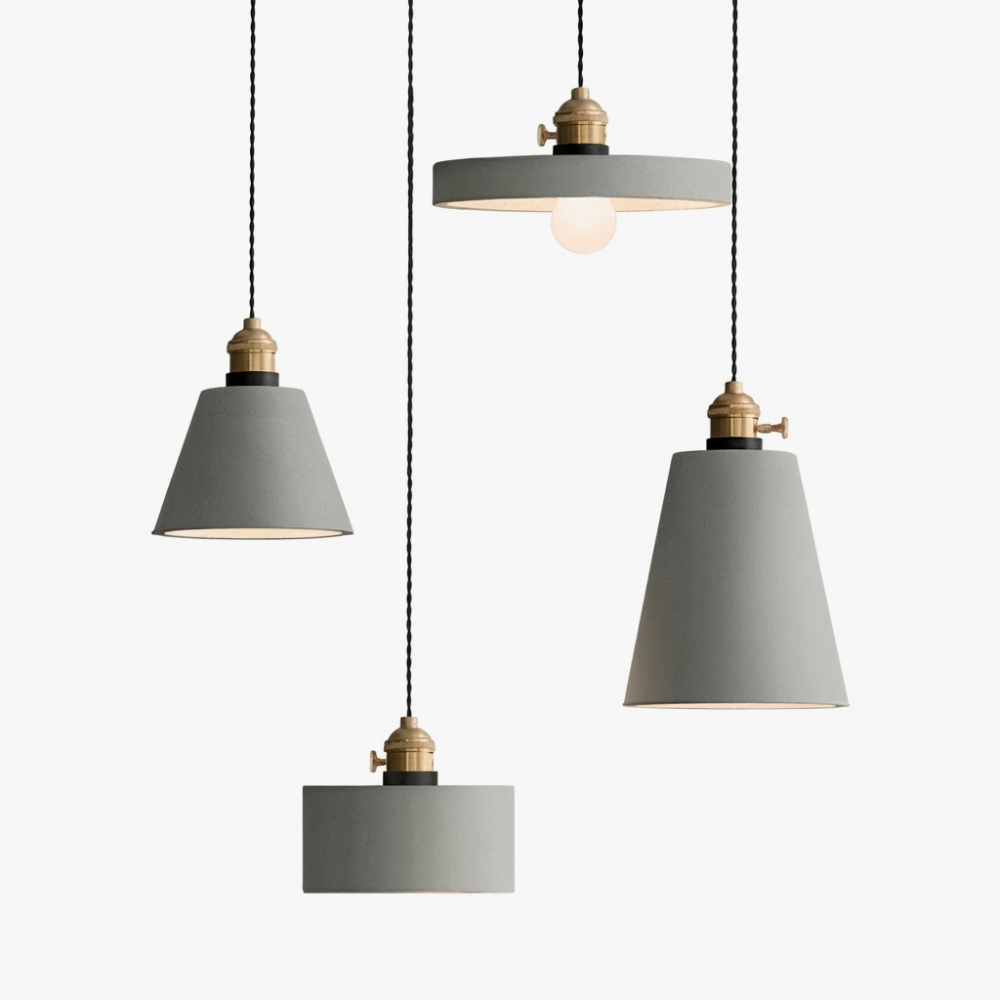 | Колір арматуриЛатунь | Колір плафонів і підвісокСірий | МатеріалМетал, Цемент |