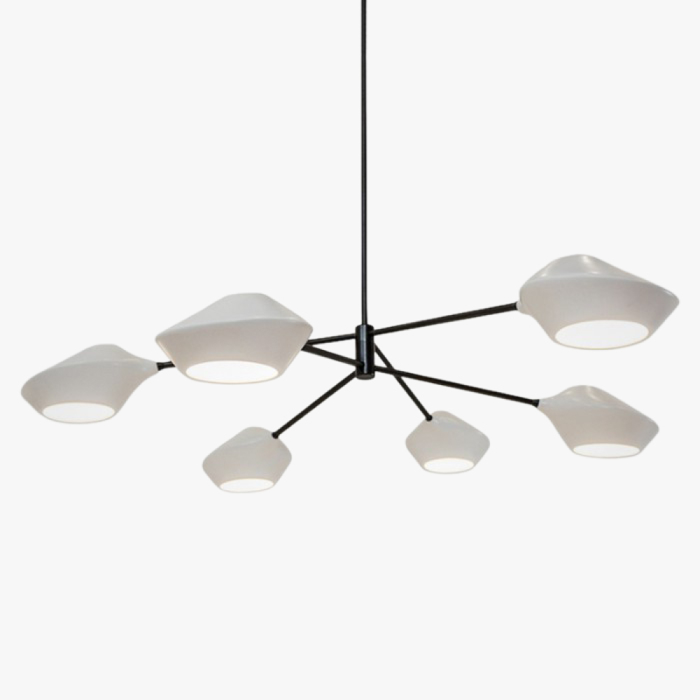 LANT Дизайнерська люстра підійде для сучасних інтер'єрів і стане головним акцентом у вашому приміщенні. Її унікальна форма плафонів надасть вашому інтер'єру свіжі ідеї і додасть елегантності.