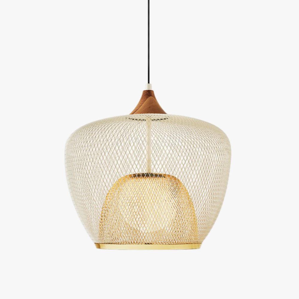 Світильник виготовлений з металу, скла і дерева, що надає йому міцність і надійність. Арматура має білий колір, а плафон - золотий. Це поєднання створює елегантний і вишуканий вигляд.