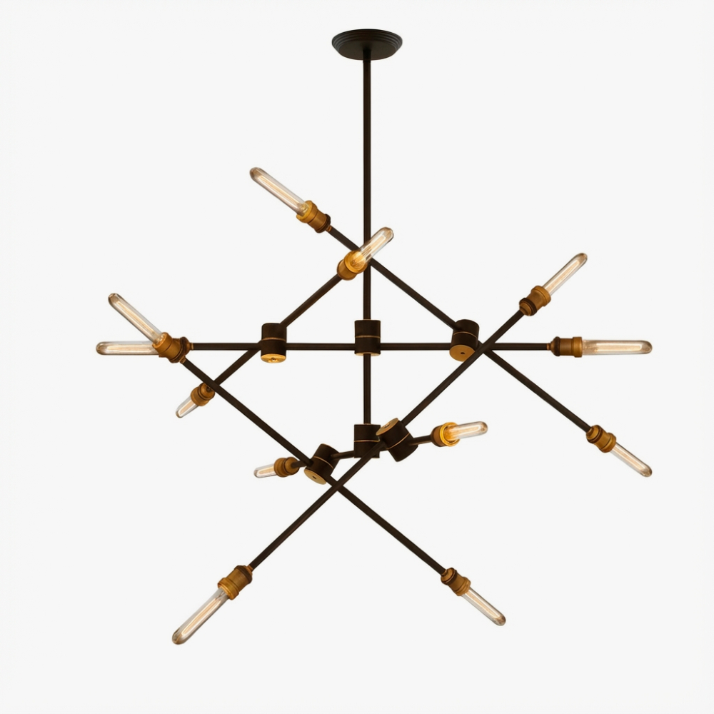 ROD Дизайнерська люстра виготовлена з високоякісного металу, що надає їй міцність та довговічність. Вона підходить для освітлення площі від 15 до 30 квадратних метрів. Люстра представлена в двох кольорових варіантах: чорному та латунному, що дозволяє підібрати її під будь-який інтер'єр.