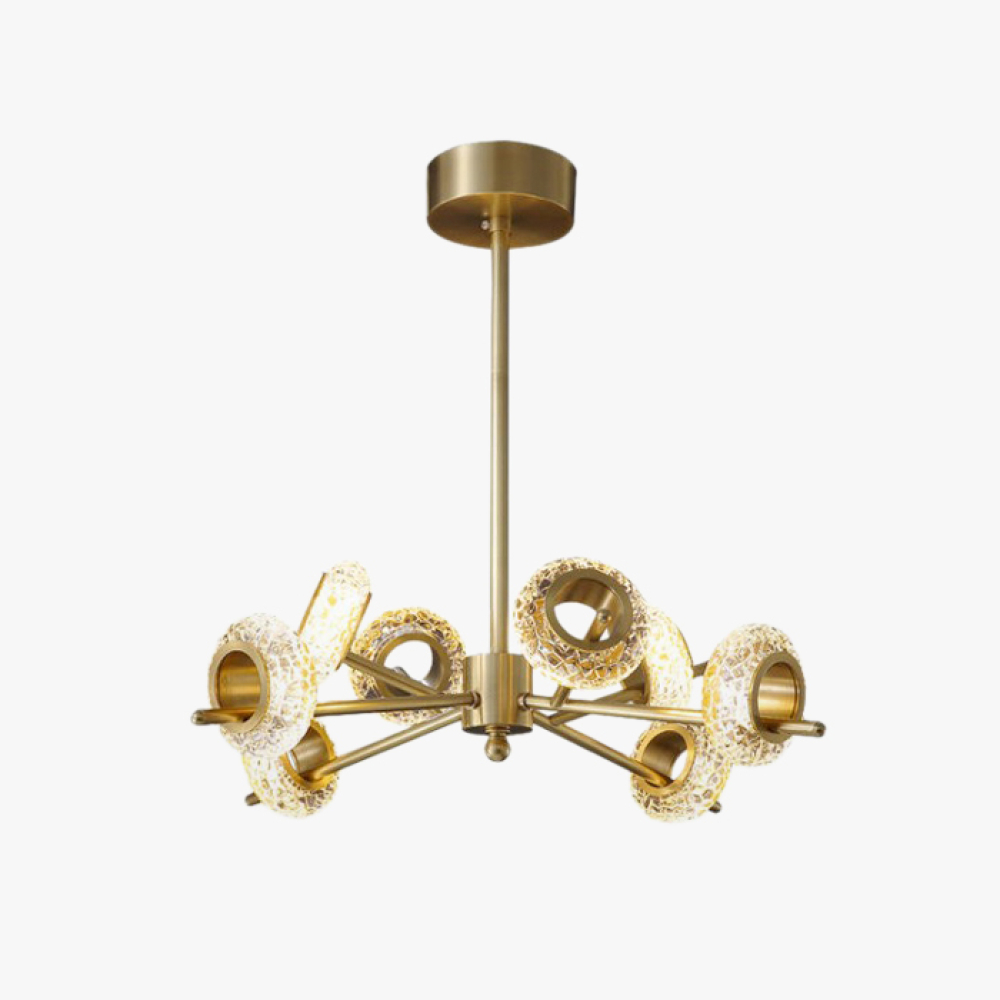 | Колір арматуриЗолото | Колір плафонів і підвісокПрозорий | МатеріалМідь, Скло |