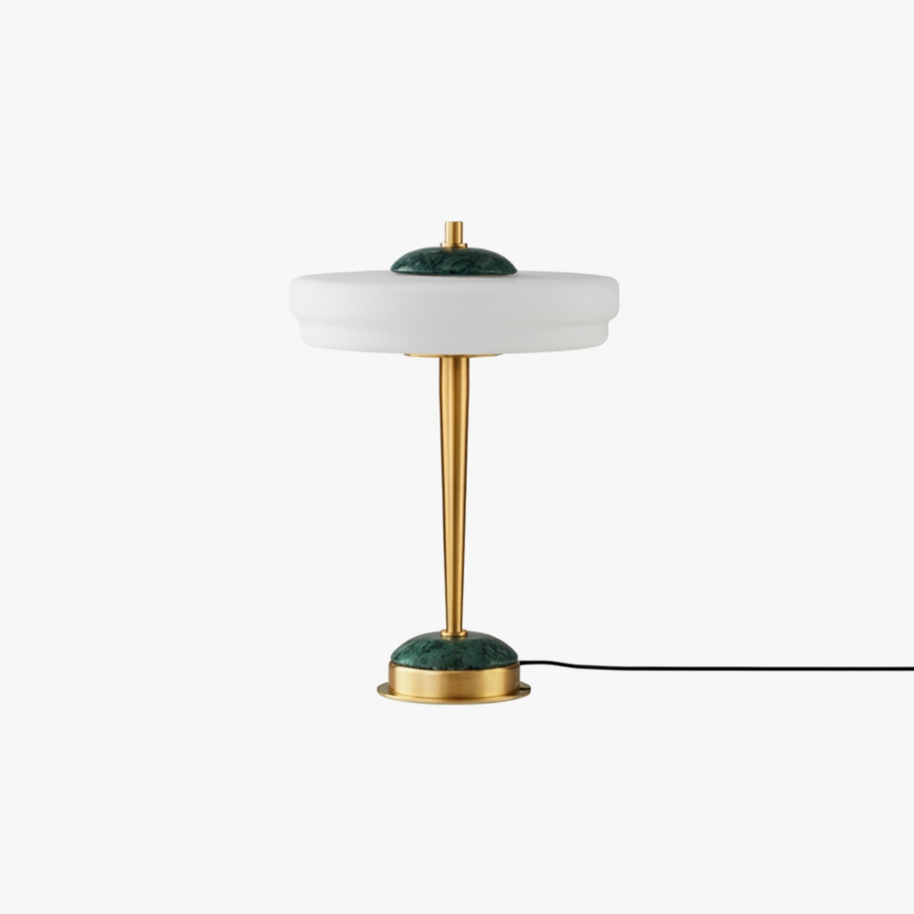 TRAVE TABLE LIGHT - це декоративна настільна лампа, яка додасть вишуканості та елегантності до вашого інтер'єру. Виготовлена з міцних і стильних матеріалів - міді, мармуру та скла.